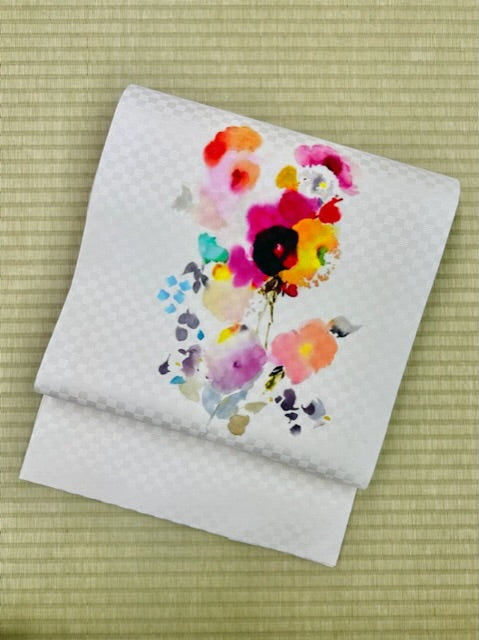 召しませ花 京袋帯(名古屋帯) 水彩ブーケ 950-2338 6-1028