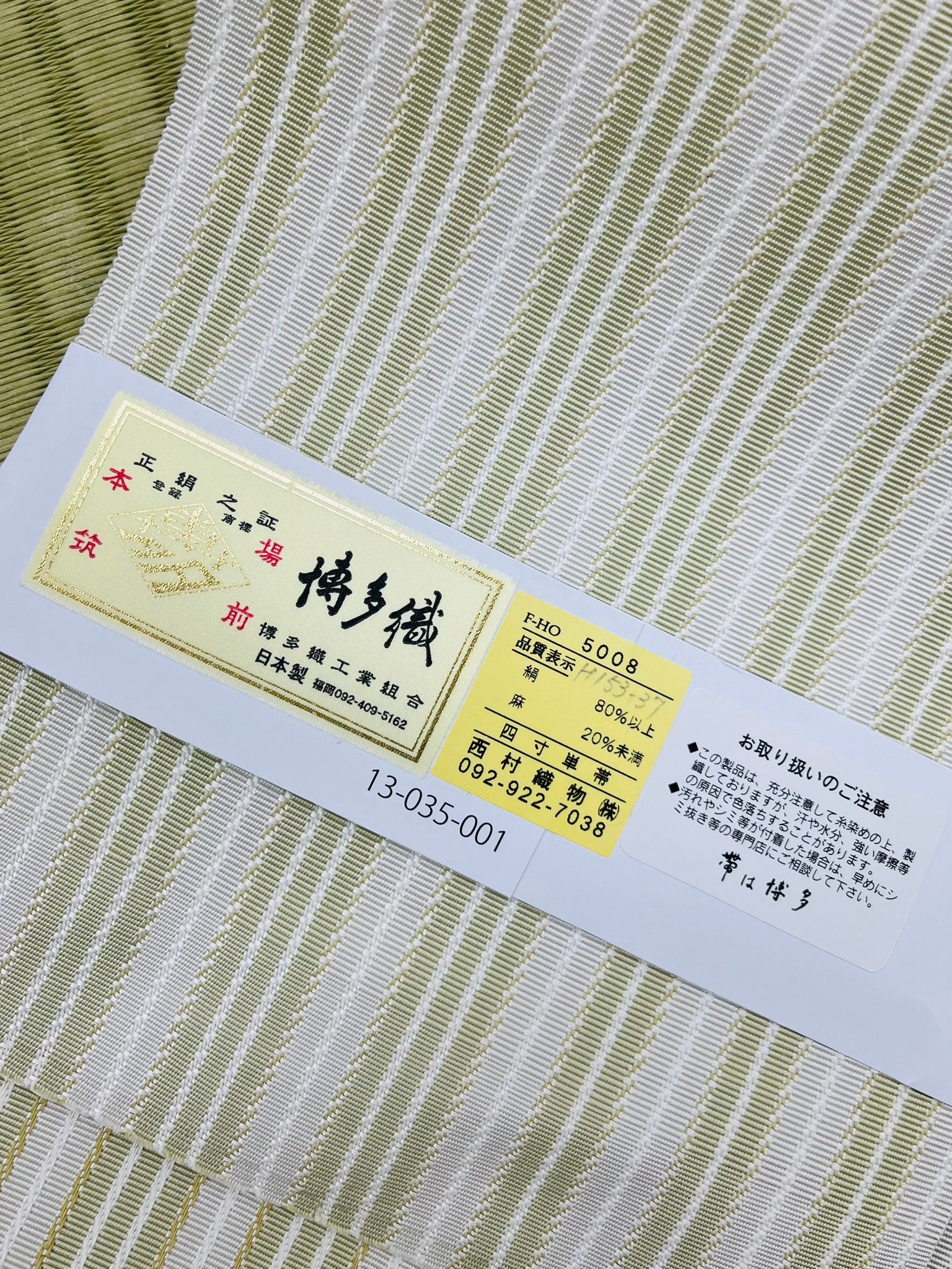 【お誂え】博多織 半巾帯 麻絹 66-156 68-20