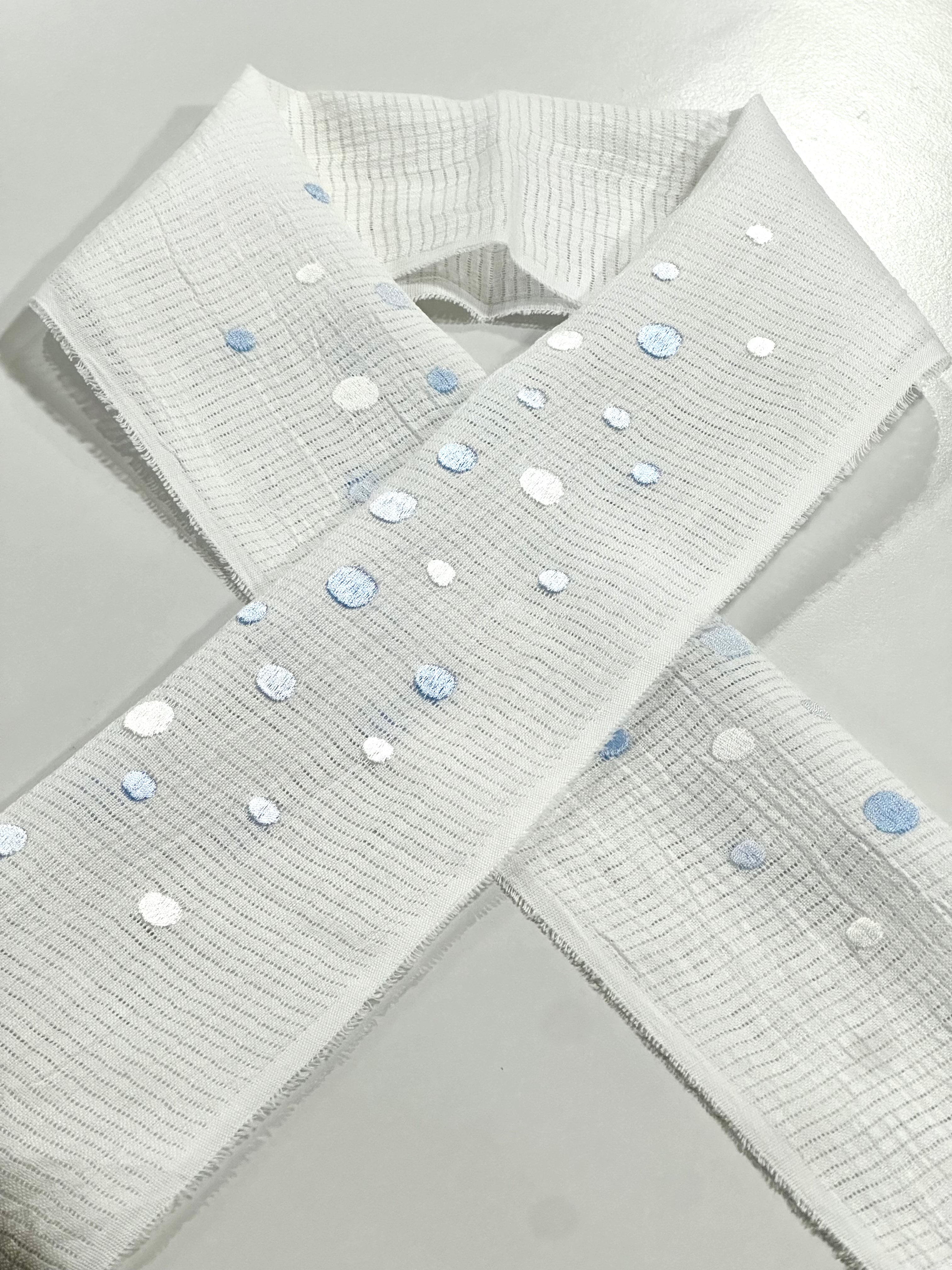 【夏】半衿 麻絽 15-24274 水玉 ドット刺繍(ブルー)5-409