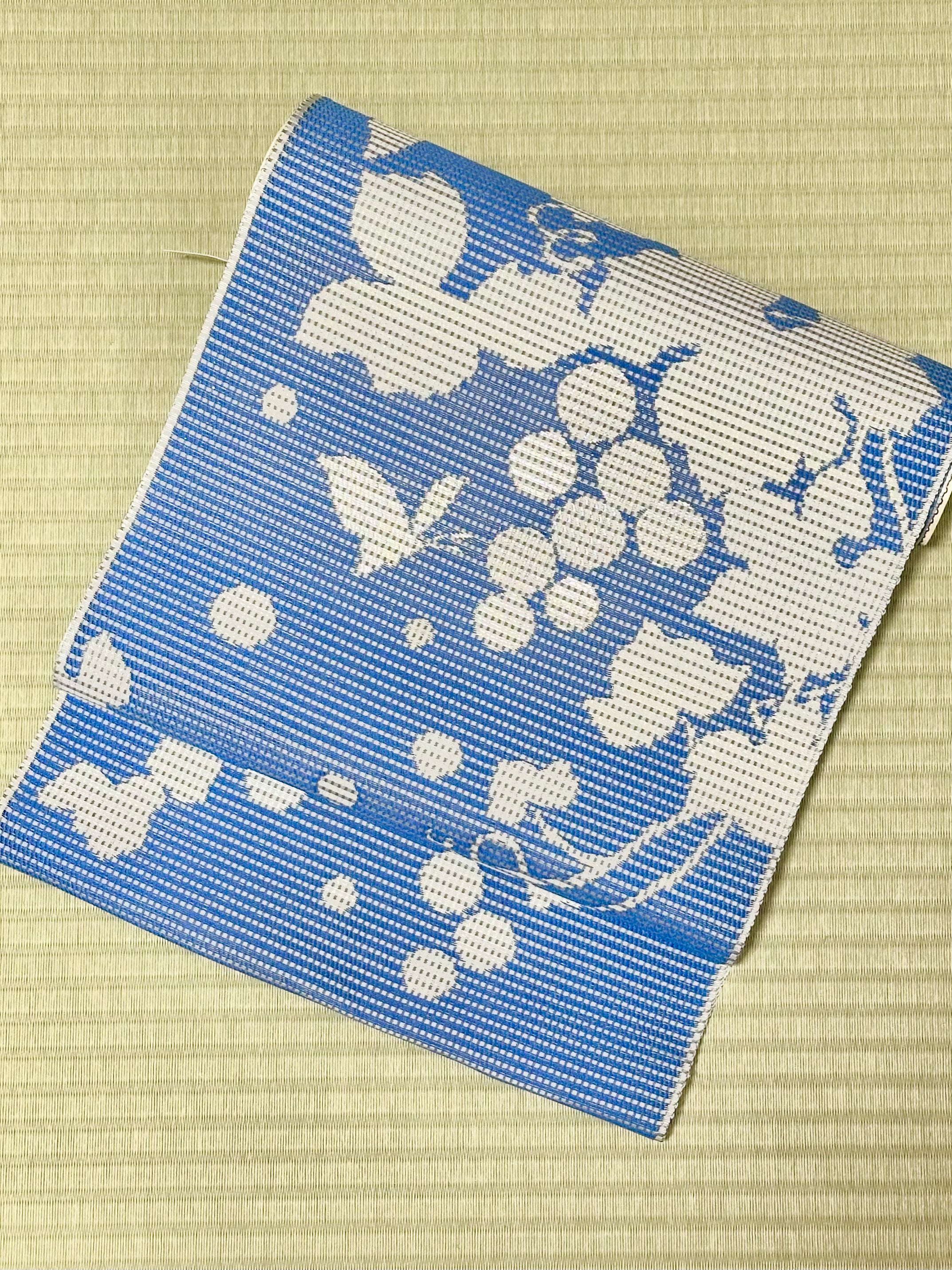 【お誂え】召しませ博多織夏八寸名古屋帯 葡萄と蝶(青) 6-972_8  68-8