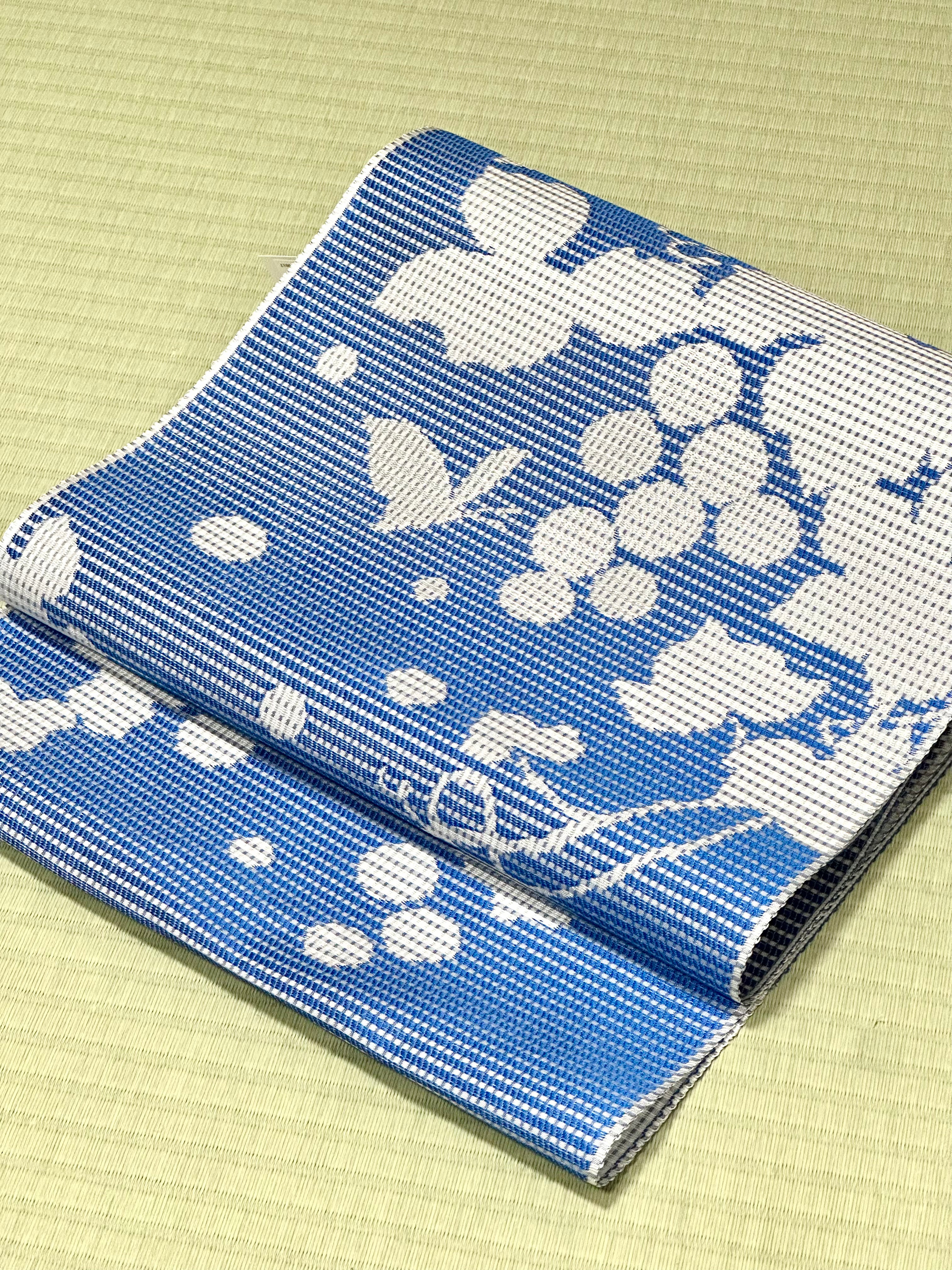 伊勢木綿の配色などにも携わっている方がプロデュースする「召しませ花」シリーズのなかの夏帯。