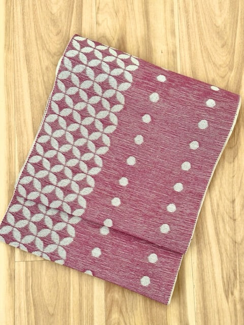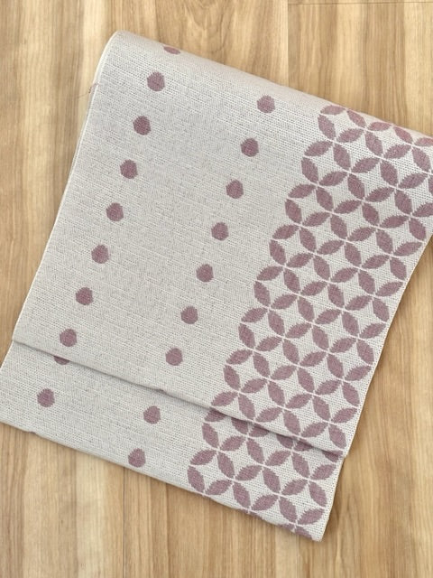 【お誂え】麻八寸名古屋帯 水玉七宝 6-973_1  68-8