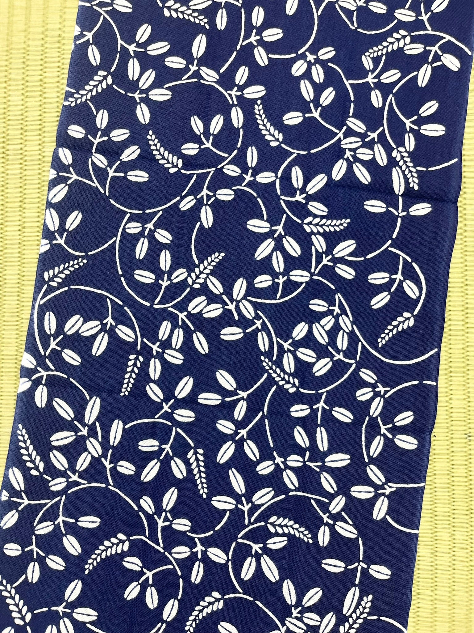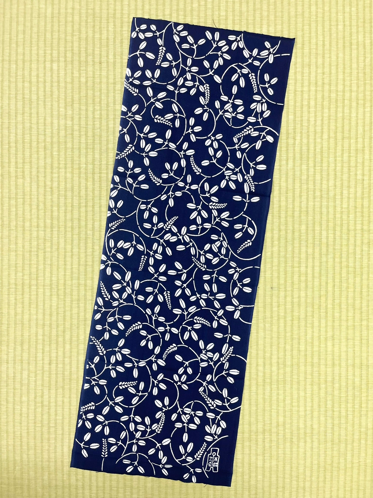竺仙では、地染めのあと、もう一度、型染めを行い二度染めしている反物のことを細川クレヤーといいます。独特な技法により、手仕事特有の他には無い染め上がりを醸し出している手拭です。