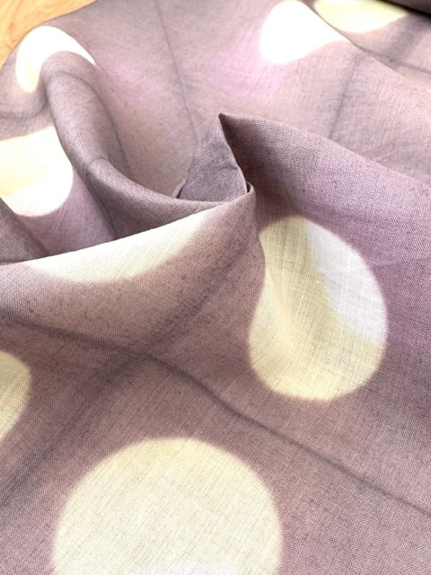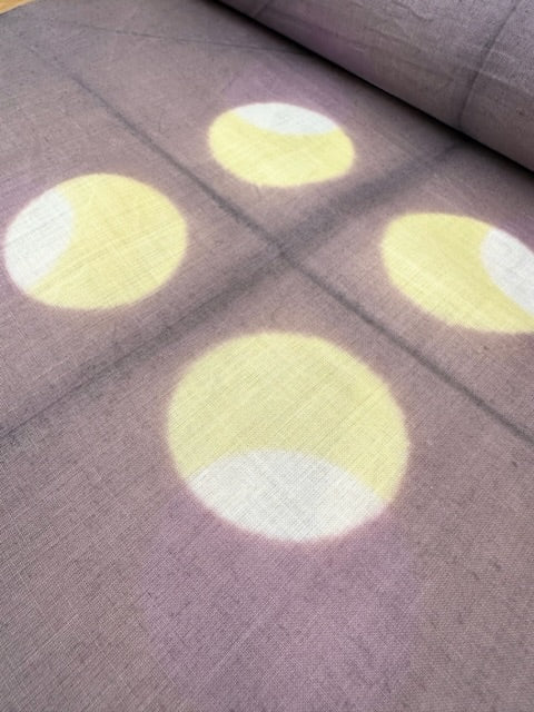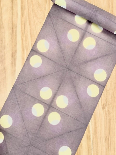 滋賀県で作られる近江麻の最高クラスの生地に板締めという技法で個性的な柄を染めた長襦袢です。天然繊維の麻だけが持つ爽やかな肌触りで、汗ばむ季節にはもちろん、一年中のご着用もおすすめです。