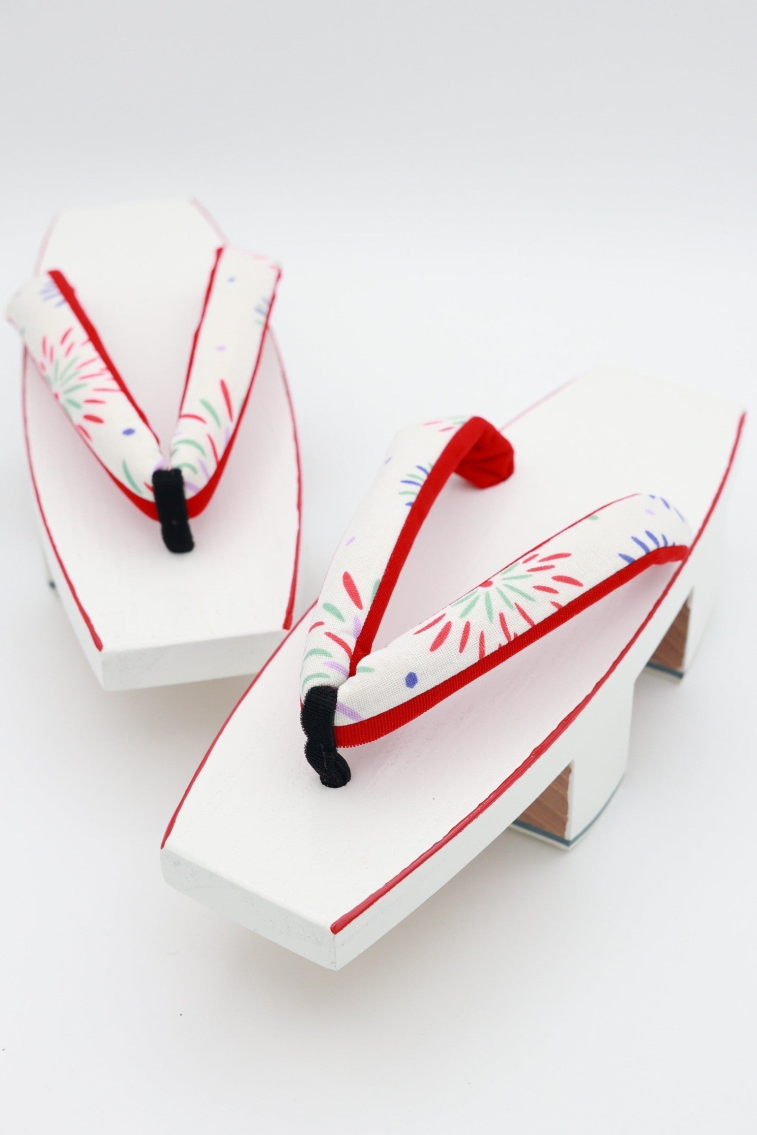 【福袋2026】【L寸】弓型下駄 赤 白花火 43 63-435