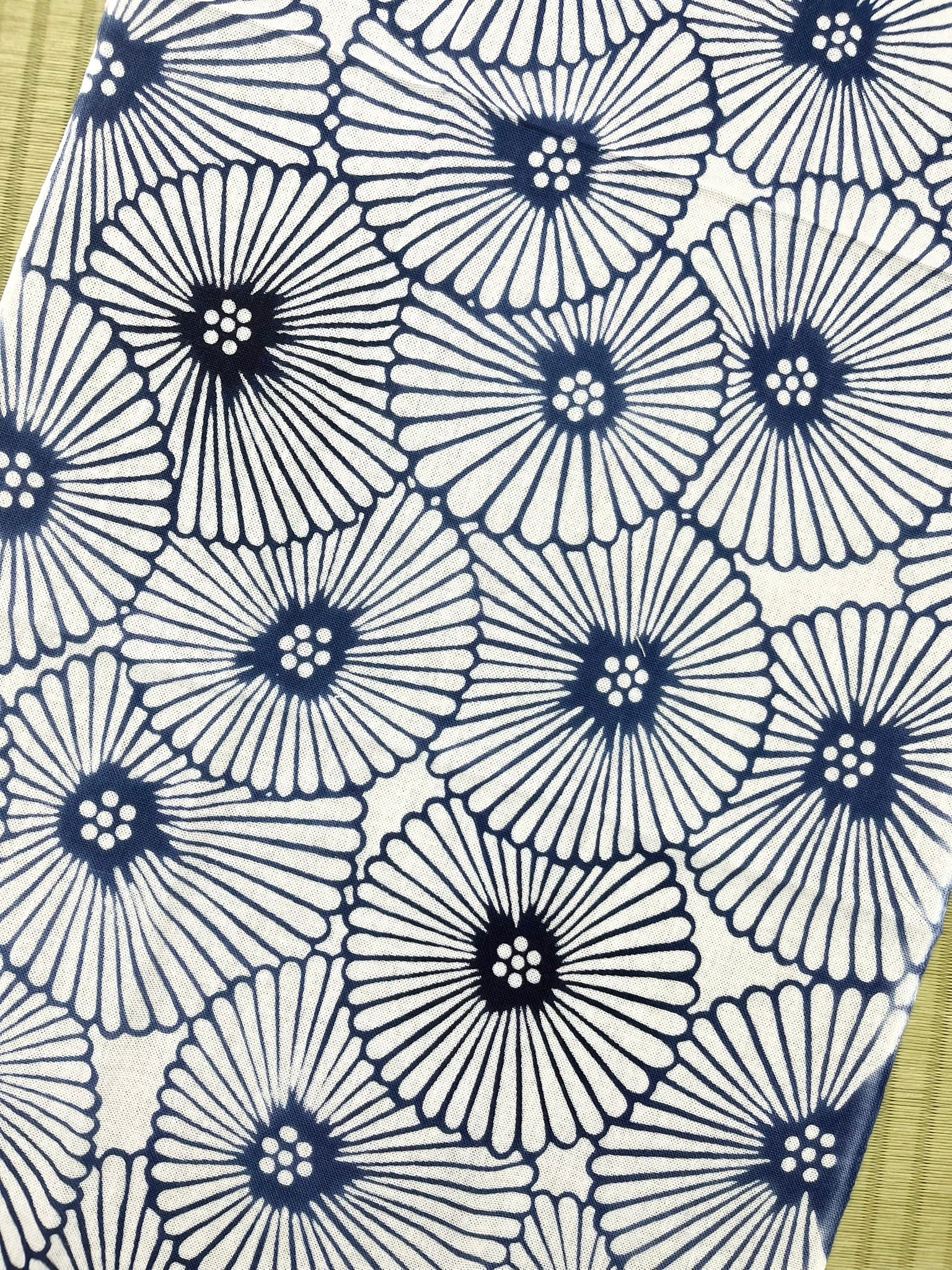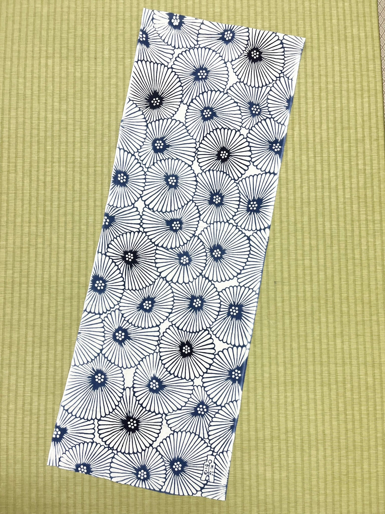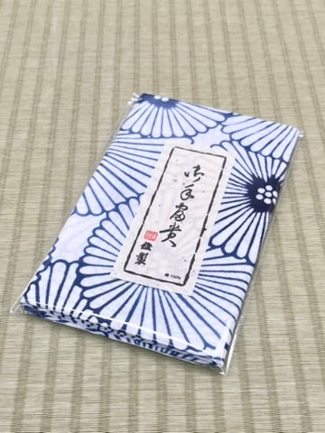竺仙では、地染めのあと、もう一度、型染めを行い二度染めしている反物のことを細川クレヤーといいます。独特な技法により、手仕事特有の他には無い染め上がりを醸し出している手拭です。